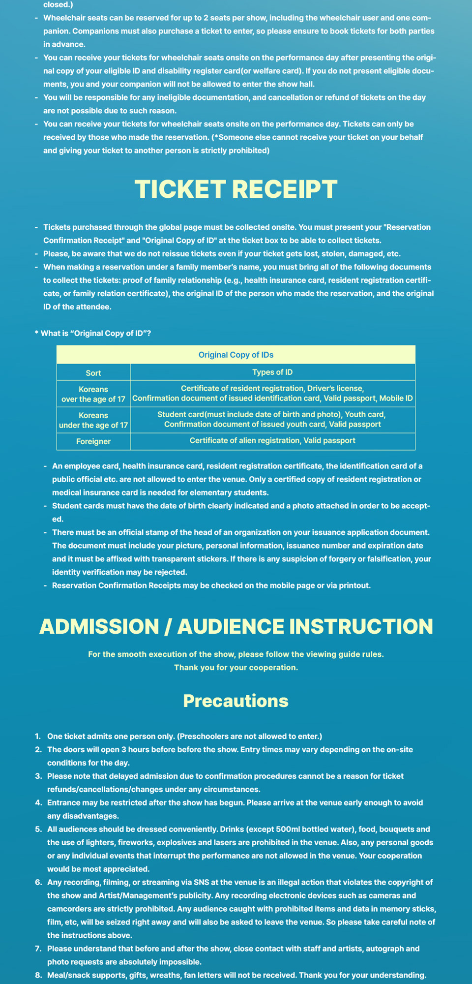 - 2 tickets per person for each show, including the ticket purchased through the FANCLUB PRESALE.