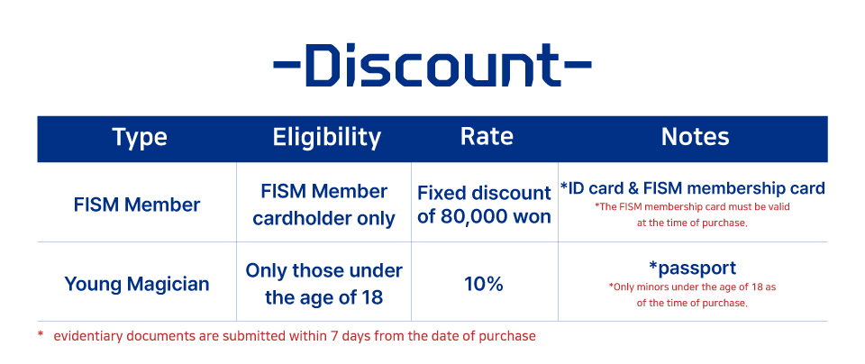 - ~ until 10 days before showday : Musical, Concert, Classic, Ballet 4,000won per 1 ticket / others 2,000 won per 1 ticket (But, 10% of paid amount)