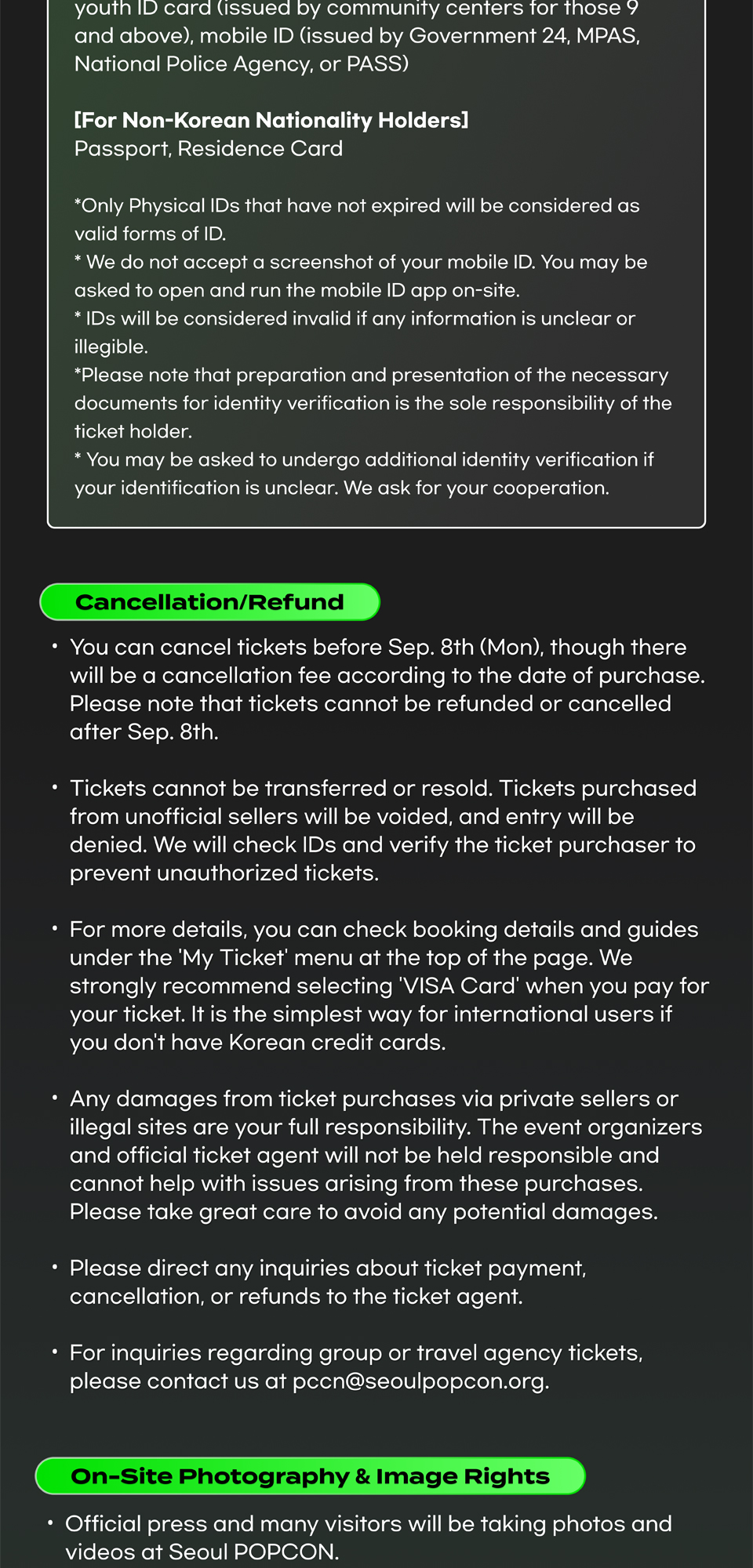 - · Each different show has different cancellation policy. Please check the policy for relevant show.