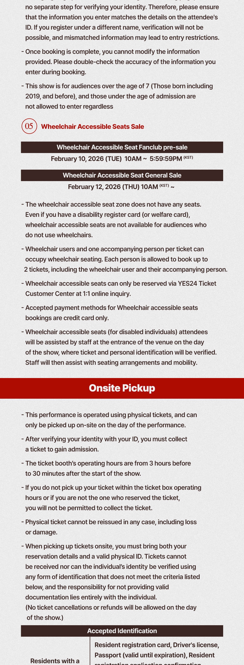 For more details regarding verification, please refer to the YES24 TICKET FAQ > Verified Member tab.