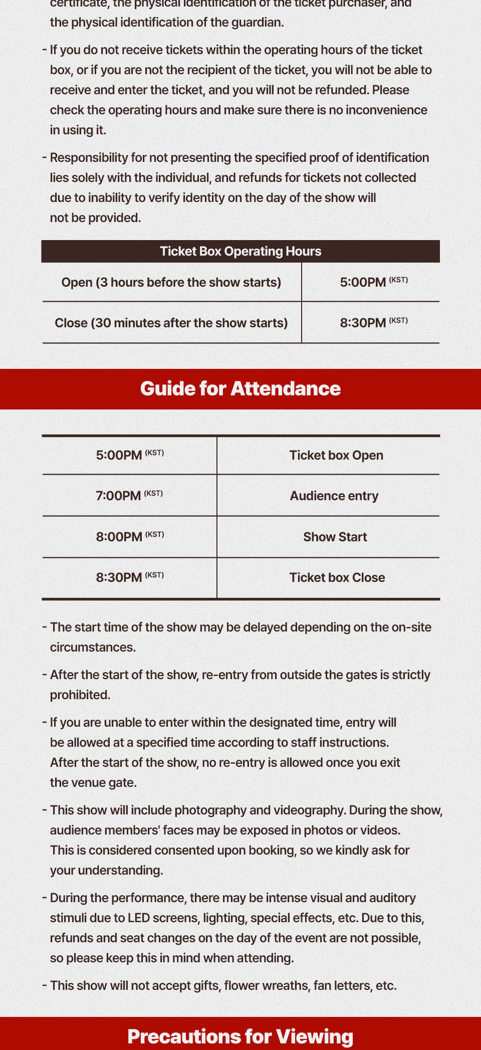 - · Each different show has different cancellation policy. Please check the policy for relevant show.