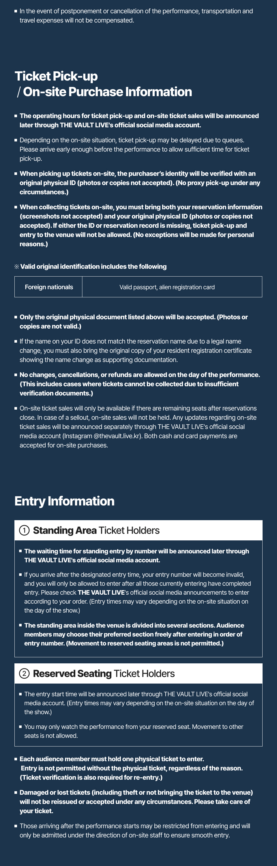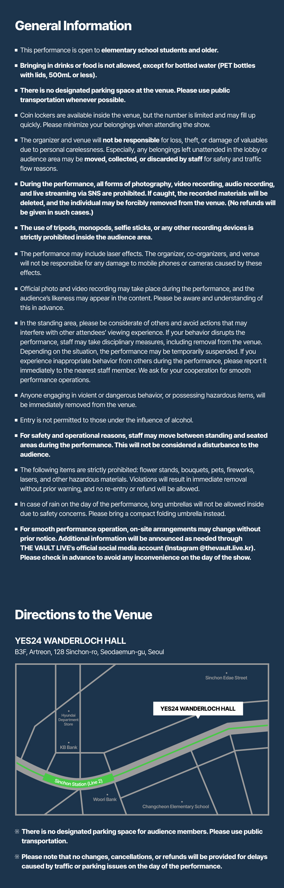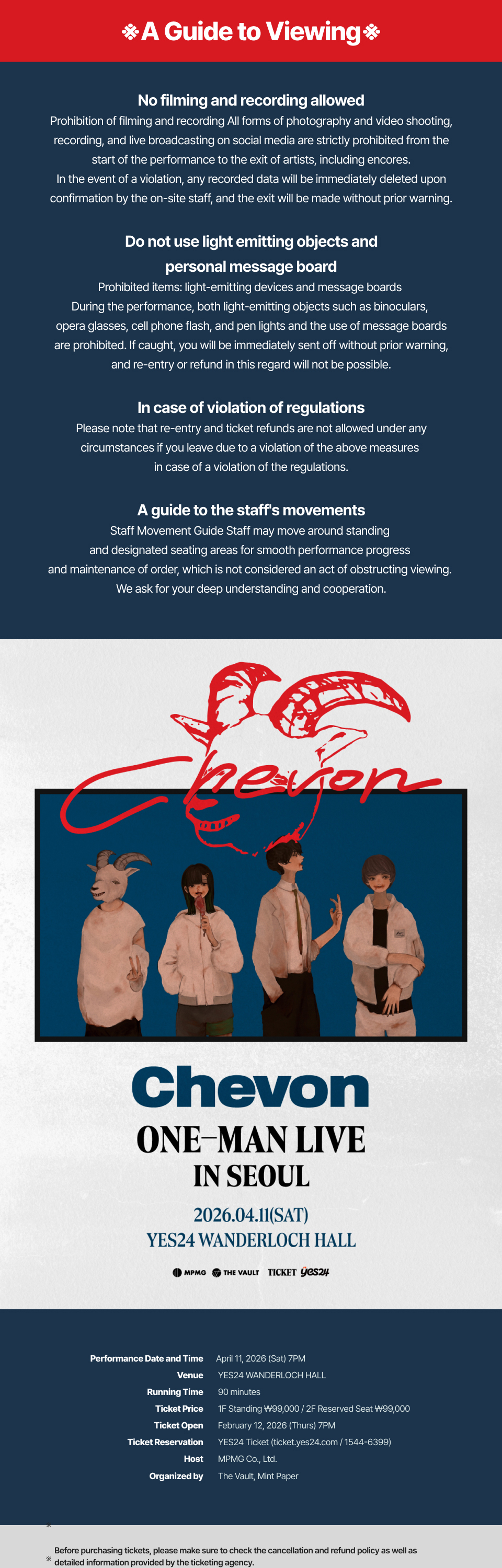 - · Each different show has different cancellation policy. Please check the policy for relevant show.