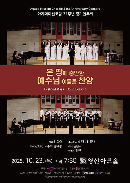 지휘 김희숙, 피아노, 오르간 이주희 홍다경, 소프라노 박은영, 강유나, 테너 김은교, 베이스 김현, 아가페미션코랄(합창단) |